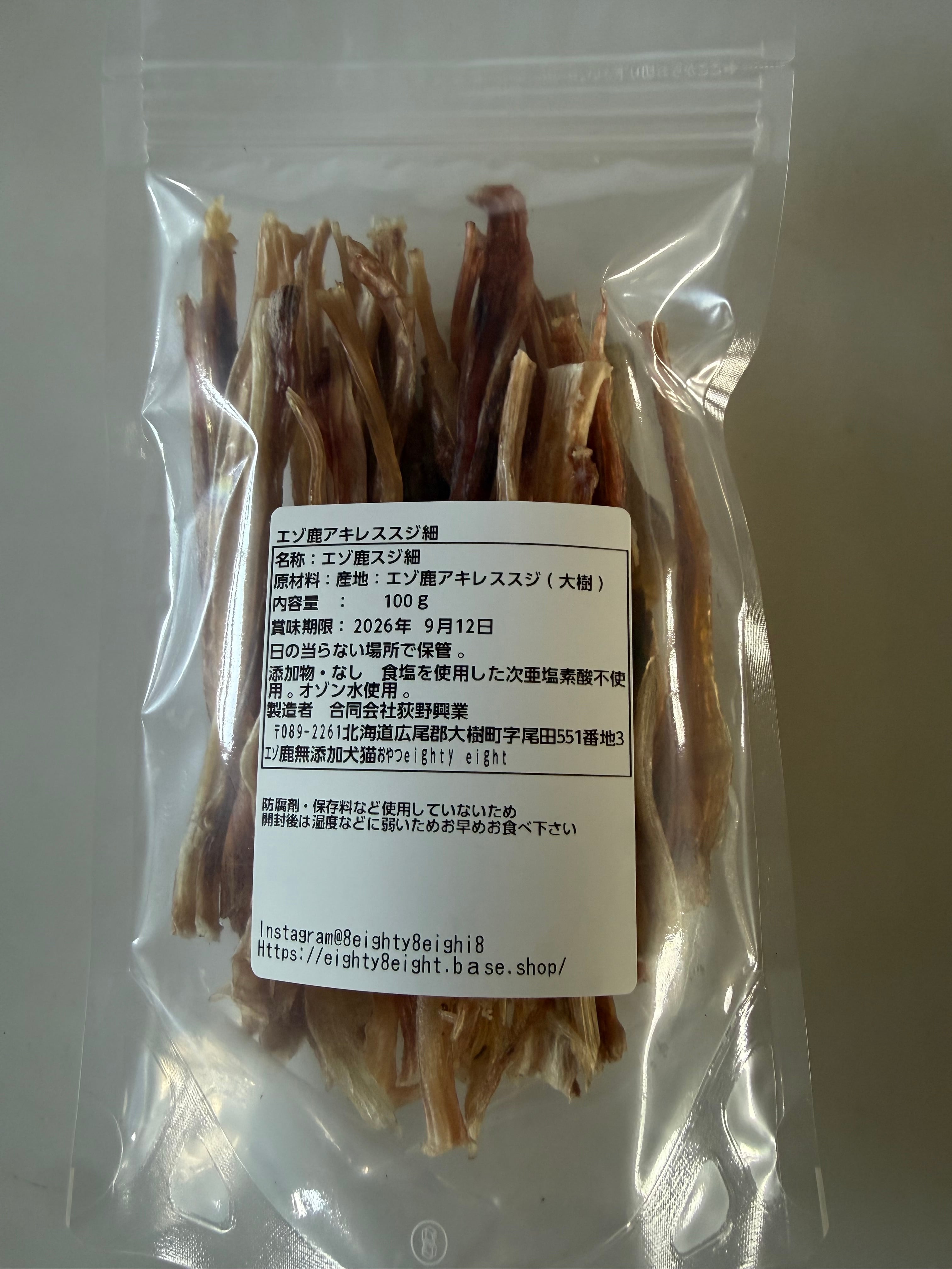 大袋 エゾ鹿アキレススジ細100g 犬のおやつ ジャーキー